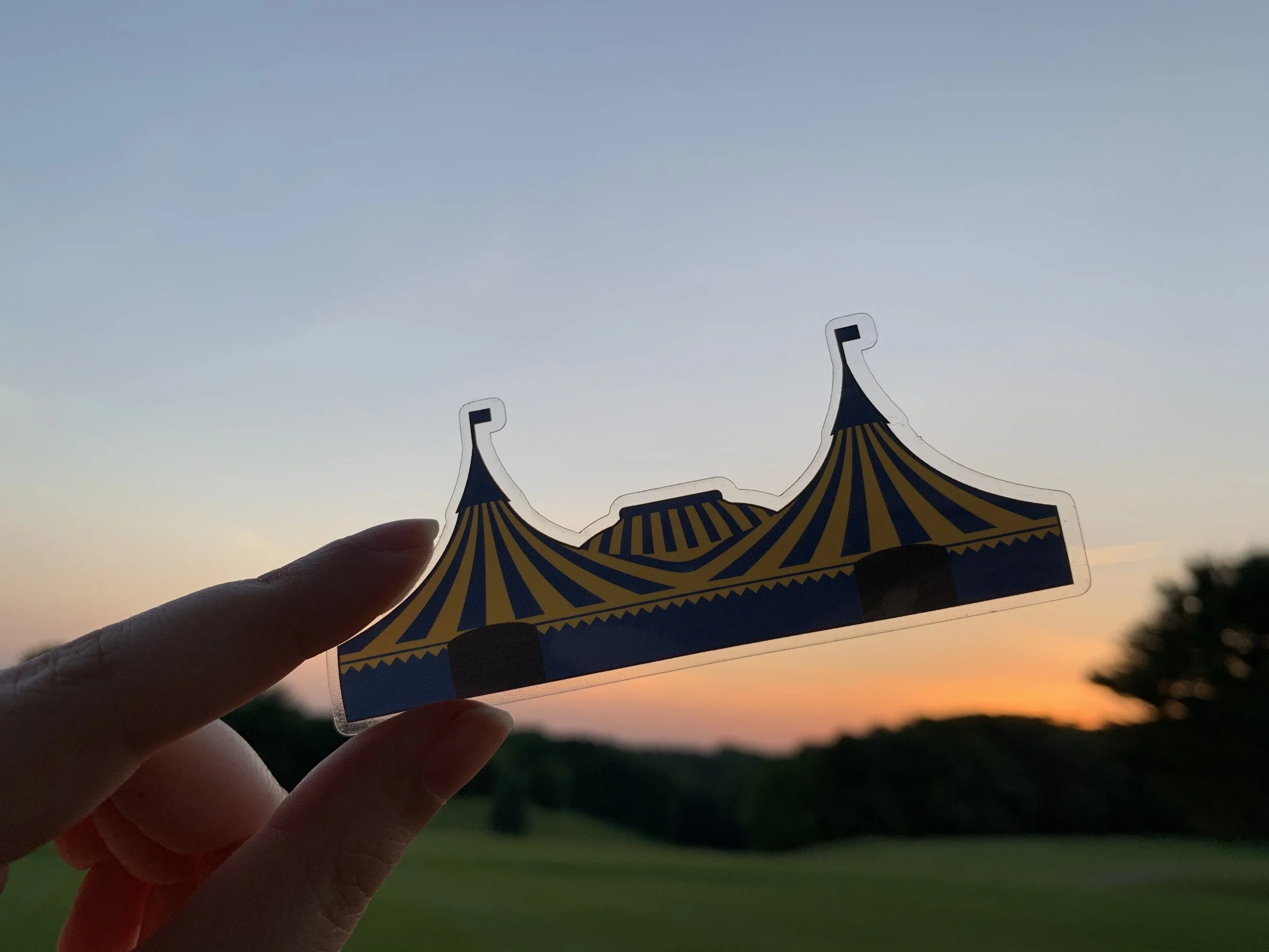 Slowly but surely live entertainment has been coming back. As a reminder of the nomadic life of working with the circus (aka touring shows) I created an ‘old school’ big top sticker. I plan to create other big top designs as each show has its own unique tent and colors.